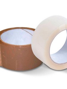 Fita para empacotamento com filme de polipropileno biorientado e adesivo acrílico a base d'água, cor transparente.